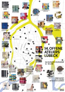 Die Lübecker Kunstschaffenden öffnen für zwei Tage ihre Türen – Offene Ateliers in Lübeck nun schon zum vierzehnten Mal, doch jedes Jahr sind neue Werke und auch andere Orte zu entdecken, lassen Sie sich ein auf Blick- und Wortkontakt. Ob Zeichnung, Malerei, Installation, Collage, Skulptur – die thematischen Fragestellungen finden ihre Materialität. Die kreative Atmosphäre beflügelt und lädt ein, sich zu vertiefen.